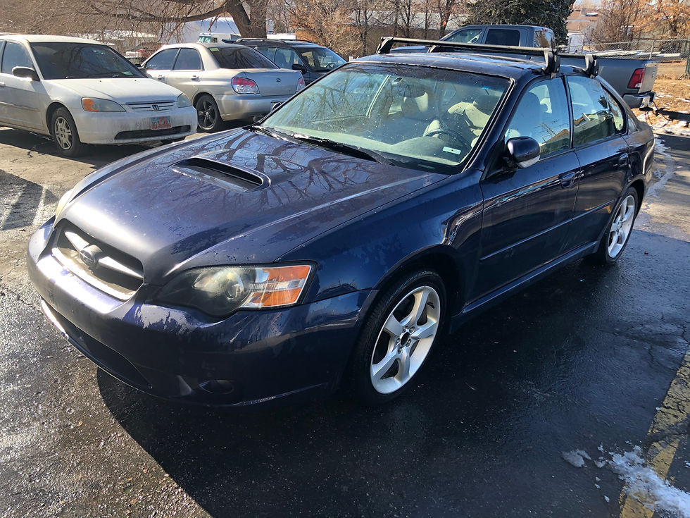 Our newest car is a 2005 Subaru Legacy GT sedan with 225K. Car has a Regal Blue pearl (35J) exterior. The interior of this car is tan in color and is in good condition. The front seats are leather and are heated. The drivers seat has a couple spots on it that are starting to have seam separation, The passenger seat is in good condition no seam separation or damage. The exterior of the car was in good condition, All body panels and bumpers are in good condition. This car ran and drove with no knock but the turbo was blown so the engine will be torn down for parts. The transmission shifted good through all gears, all fluid was clean and clear when drained and there is no damage to that we can see. The car had a set of OEM Legacy GT 17" wheels that have a 5 spoke design and are silver in color, All wheels are in good condition. The tires are 205/50/17 Bridgestone A/S with 5/32nds left on tread.