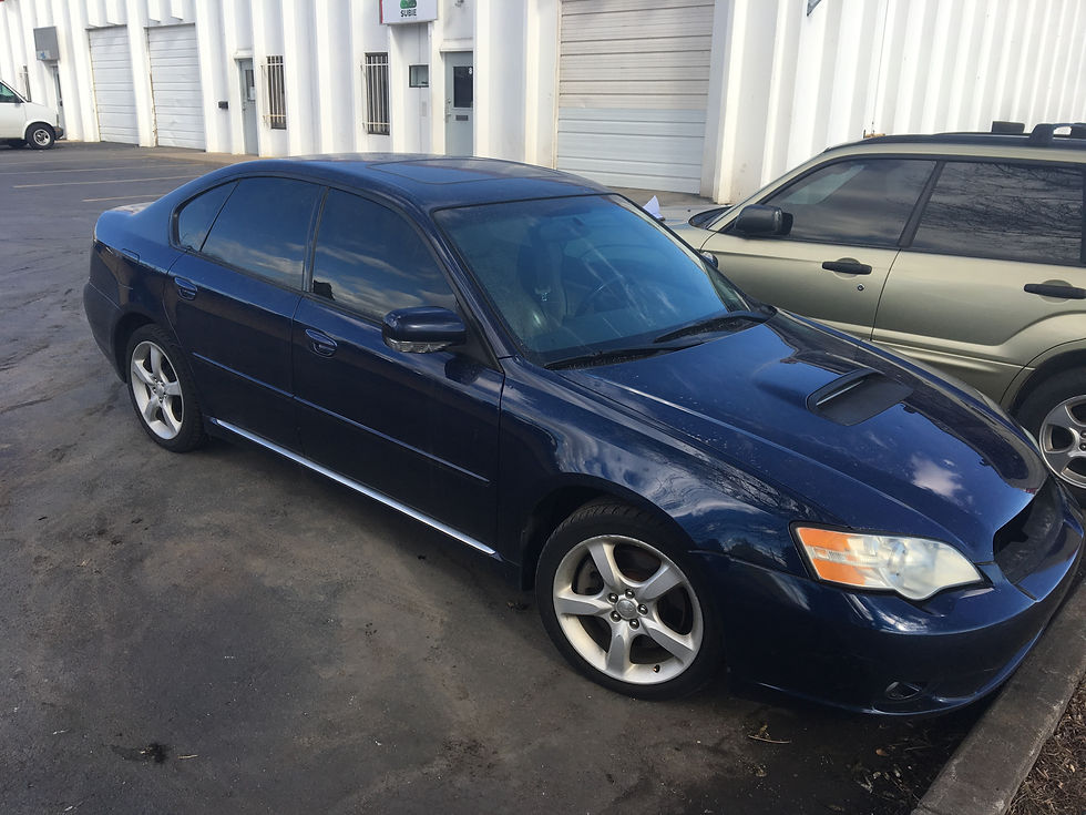 Our newest car is a 2006 Subaru Legacy GT sedan 2.5l with 179k. Car has a Regal blue pearl (35J) exterior and it has a tan leather interior in rough condition. Both front seats had damage and were torn down for parts. The engine ran and drove good with no knock or smoke all oil was clean and clear when drained, once it was removed a leakdown test done which came back with good numbers for all cylinder. Engine will be sold as a longblock only. The transmission shifted good through all gears, all transmission and differential fluid was clean and clear when drained. Car came with a set of oem Legacy GT 5 spoke 17" alloy wheels. All wheels are in good condition no bends or cracks that we can see, the tires had damage and will be removed before sale. The car was not in a major accident but had damage to the rear bumper and rear doors, the front doors, front bumper, trunk lid and hood are in good condition. This car came with a after market 3" catback exhaust that is in good used condition.