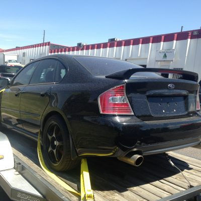 Our newest car is a 2006 Subaru Legacy GT limited sedan with 90K on the odometer. Obsidian black pearl is the color, black leather interior in very good shape. Heated seats, power everything, moonroof! Manual transmission. Hit in the front above the crash bar, damage was pretty minimal. Engine runs!