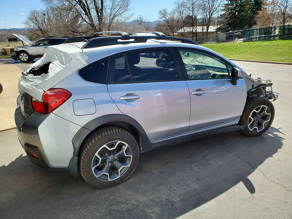 Our newest car is a 2013 Subaru Crosstrek XV with 85K on the odometer. Ice Silver Metallic (G1U) is the color, interior is black cloth in good condition both front seats are in are in very good condition no seam separation or bolster wear. The engine is in good condition it ran and drove with no knock or smoke from engine, all oil was clean and clear when drained once removed all cylinders came back with good leak down numbers. The car came with a CVT transmission with a 3.70 final drive, the transmission fluid was clean and clear when drained. Car was hit in the rear driver side and passenger side front and has damage to most of the exterior panels. The passenger side doors and drivers front door are in good condition. The wheels from this car are OEM crosstrek 17" wheels, one of them were damaged in the accident the other two will have the tires removed and sold as singles.