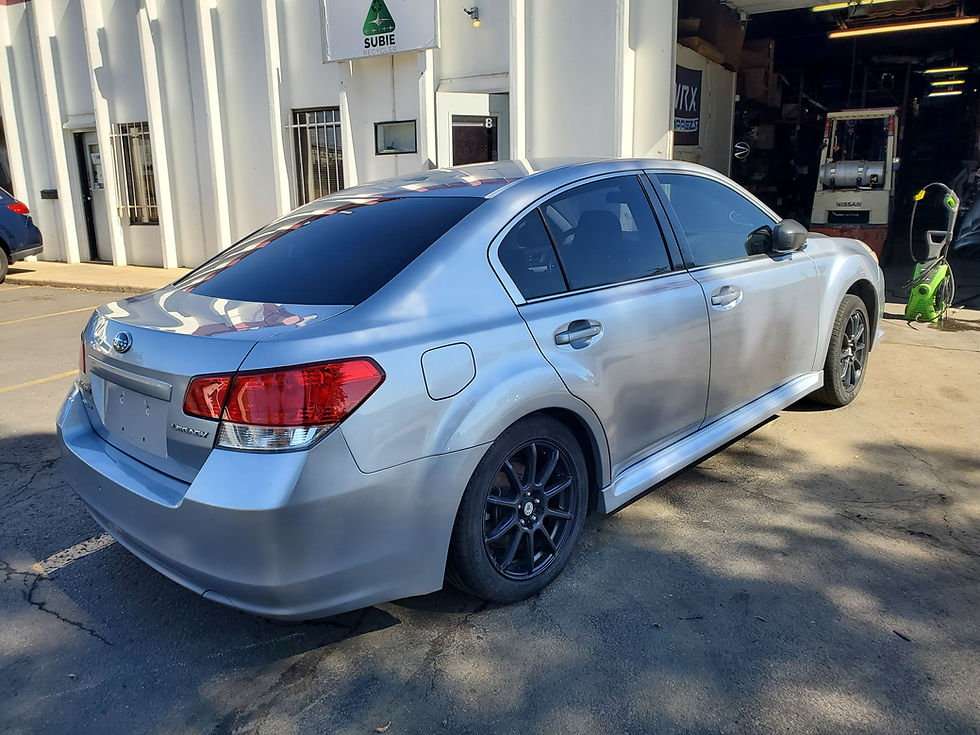 Our newest car is a 2014 Subaru Legacy 2.5L with 143K on the odometer. The car has a Ice Silver Metallic (G1U) exterior color, the interior is black in color and the seats are cloth material. Both front seats are in good condition with no rips or seam separation, Both seats are non heated and have manual adjustments. The engine ran and drove with no knock or smoke. All oil and coolant were clean and clear when drained. Once removed a leakdown test came back with good numbers on all cylinders. The car came with a CVT automatic transmission which is in good condition, it ran and drove good with no issues. All transmission and differential fluid was clean and clear when drained. The car was hit in the drivers side rear door so the rear door and rear bumper had damage. The rest of the body panels are in good condition. The wheels from this car are aftermarket Konig. They are 17" aluminum wheels with a 10 spoke design and are black in color, all wheels are in good condition no bends or cracks we can see. The tires are 225/50/17 Pirelli Cinturato all seasons, The tires have 6/32nds left on the tread and are in good condition.